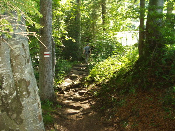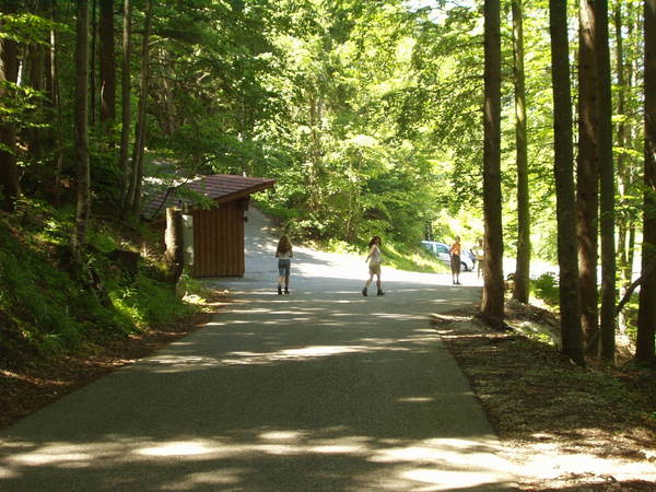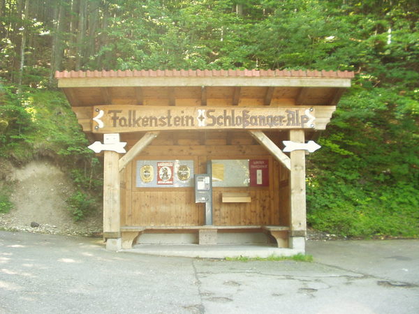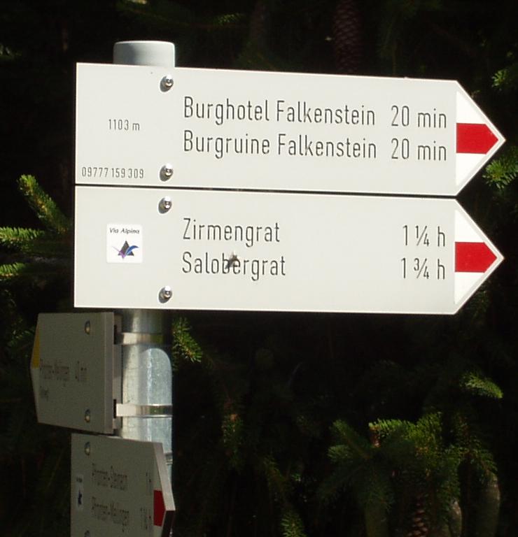 | Sie durchfahren Meilingen komplett und passieren am Ortsausgang einen grossen Parkplatz, den Sie links liegen lassen. Die Ruine Falkenstein weist Ihnen die Richtung. Nach ca. 2 km erreichen Sie wiederum einen Parkplatz mit einer Weggabelung (ein kleiner Unterstand direkt vor Ihnen liegend). Hier parken gegen Gebühr oder rechts der steilen Strasse folgend hinauf zur Schlossanger Alp. Dort ist auch ein Parkplatz.