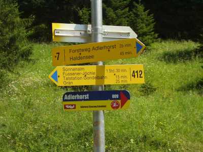 Los geht’s an der Talstation der Füssener Jöchle Bahn. Diese bringt einem in ca. 10 min. zur Bergstation. Wenn man aus der Gondel aussteigt geht man ca. 50 m geradeaus. Der Weg beginnt rechts hinter der Sonnenalm.