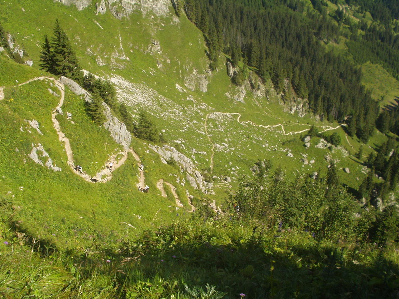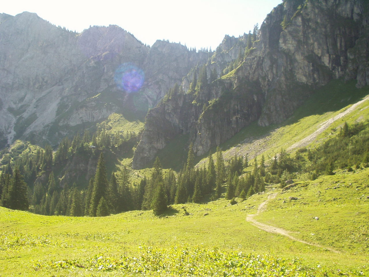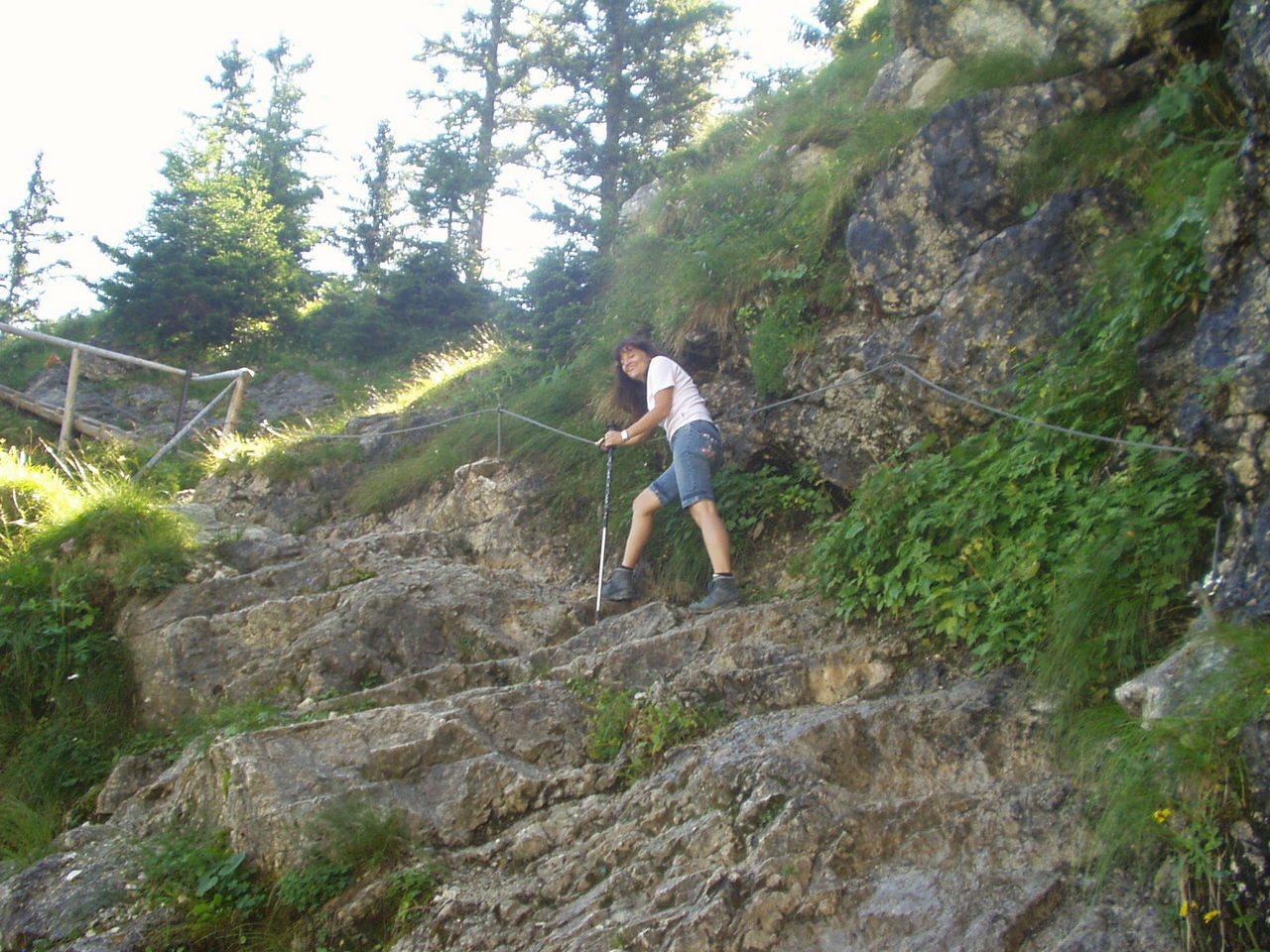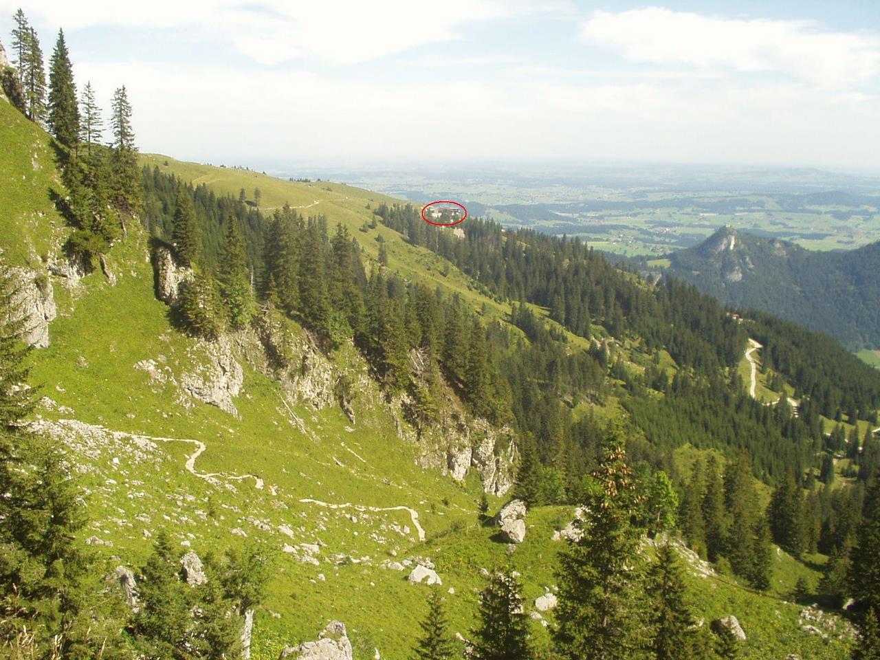 | Bei dieser Tour sind wir in Pfronten – Steinach mit der Breitenbergbahn zur Bergstation gefahren. Von dort aus geht man an der gegenüberliegenden Hochalphütte vorbei und direkt dahinter biegt der Pfad nach links ab. Diesem folgt man jetzt leicht bergauf und bergab über die Almwiesen bis zur Diensthütte. Von der Diensthütte aus schlängelt sich nun der Pfad steil bergauf Richtung Bad-Kissiger-Hütte. Dort angekommen hat man sich erst einmal eine Erfrischung verdient. Es empfiehlt sich diese Tour früh zu beginnen, um auf der schönen Terrasse einen Platz zu bekommen denn ab 12 Uhr wird es dort richtig voll. Wenn man schon auf der Bad-Kissinger-Hütte ist kann man noch den Gipfel vom Aggenstein mitnehmen ( ca. 25 min ab der Bad-Kissiger-Hütte ). Das letzte Stück vor dem Gipfel ist mit einer Kette gesichert. Dies Haben wir bei dieser Tour nicht gemacht sondern sind nach einer ausgiebigen Rast nach Grän abgestiegen. Vor dem Hotel Lumberger Hof ist eine Bushaltestelle von dort sind wir mit dem Bus zurück nach  Pfronten gefahren. 2008 war die Busfahrt für Besitzer einer Pfrontener Gästekarte kostenlos. Der Bus steuert verschiedene Stationen an und hält auch direkt an der Breitenbergbahn. Wichtig, vor Touren bei denen man mit dem Bus fährt immer vorher über den Fahrplan informieren. ----------------------------------------------------------------------------------------------------------------------------------------------------------------------------------------------------------------------------