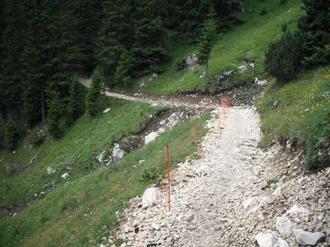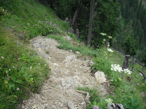 | Kurz vor Nesselwängle befindet sich ein gebührenpflichtiger Parkplatz. An diesem habe ich mich absetzen lassen um meine Tour zu beginnen. Die Gehzeit ist auf den Schildern am Parkplatz mit 2 1/2 Std. angegeben. Diese Zeitangabe passt ganz gut. Da an diesem Tag für mittags Regen gemeldet war und ich unbedingt nach oben wollte, bin ich etwas schneller und ohne Pause die Strecke in 2 Std. gelaufen. Auf dem Rückweg habe ich mir dann mehr Zeit gelassen und auf der Tannheimer Hütte und dem Gimpelhaus eine Rast gemacht.  Auf dem letzten Stück vom Gimpelhaus zurück nach Nesselwängle wurde ich dann aber doch noch nass. Die Tour ist auch mit Kindern machbar aber etwas Ausdauer wäre von Vorteil.