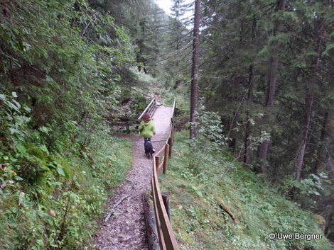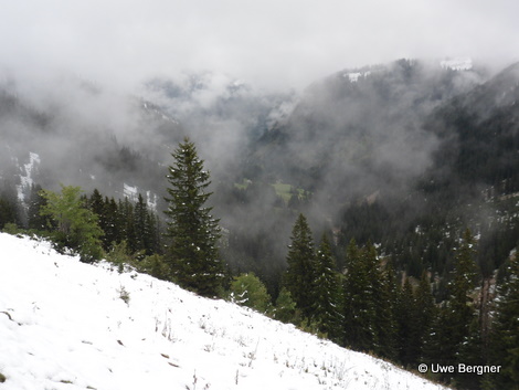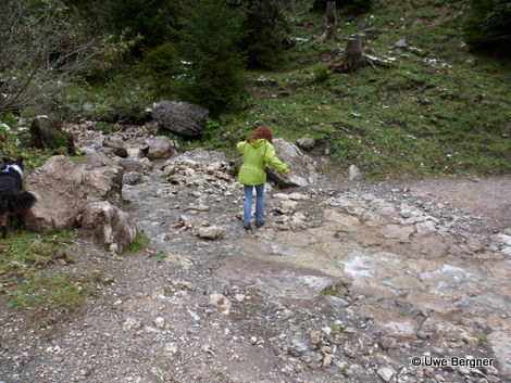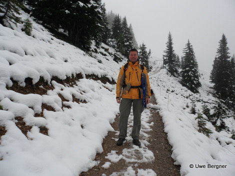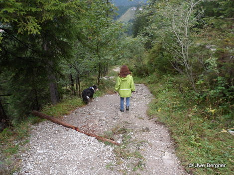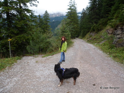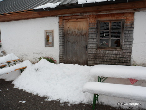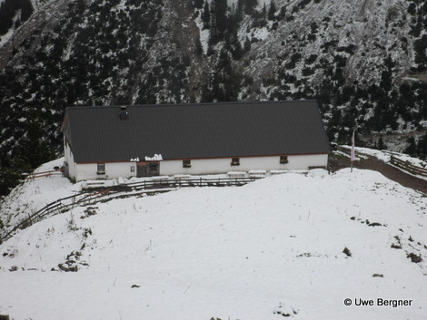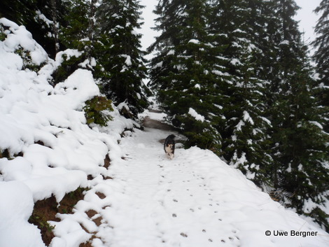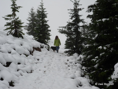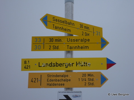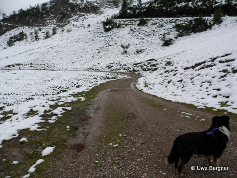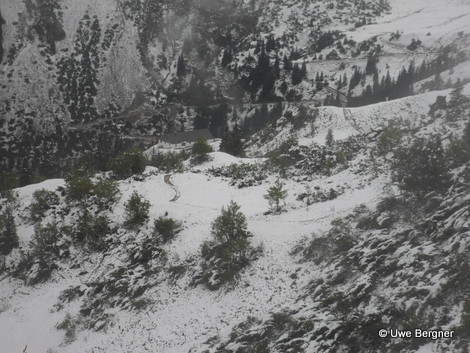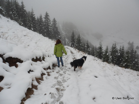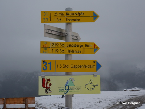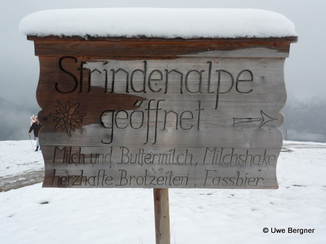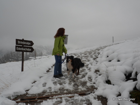 | Wir entschieden uns auf Grund von 15 cm Schnee, an diesem Tag für die Tour nach Haldensee, da der grösste Teil des Weges über einen befestigten  Forstweg führt. Der Weg führt ab Bergstation der Seilbahn über einen Fussweg bis zur Strindenalm. Ab dort geht der breite Forstweg bis ins Tal. Aufgrund des Viehscheid in Haldensee hatten die Strindenalm sowie die Edenbachalm leider geschlossen.Die Tour ist auch für Kindern gut geignet.